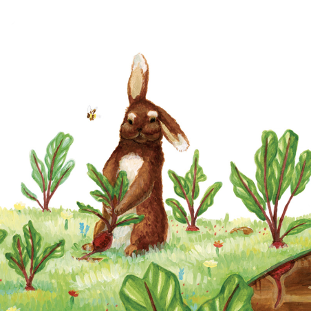Mots clés: Lapin, potager, légumes, curiosité, persévérance, erreur